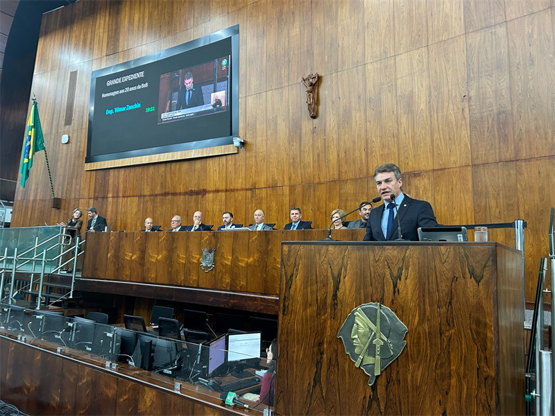 Com o plenário 20 de Setembro repleto de autoridades, representantes dos poderes, líderes de entidades e veículos de comunicação, a Assembleia Legislativa do Rio Grande do Sul prestou homenagem nesta quarta-feira (9) aos 20 anos da Be8, gigante brasileira do setor de biocombustíveis com sede em Passo Fundo e liderada pelo empresário Erasmo Battistella.