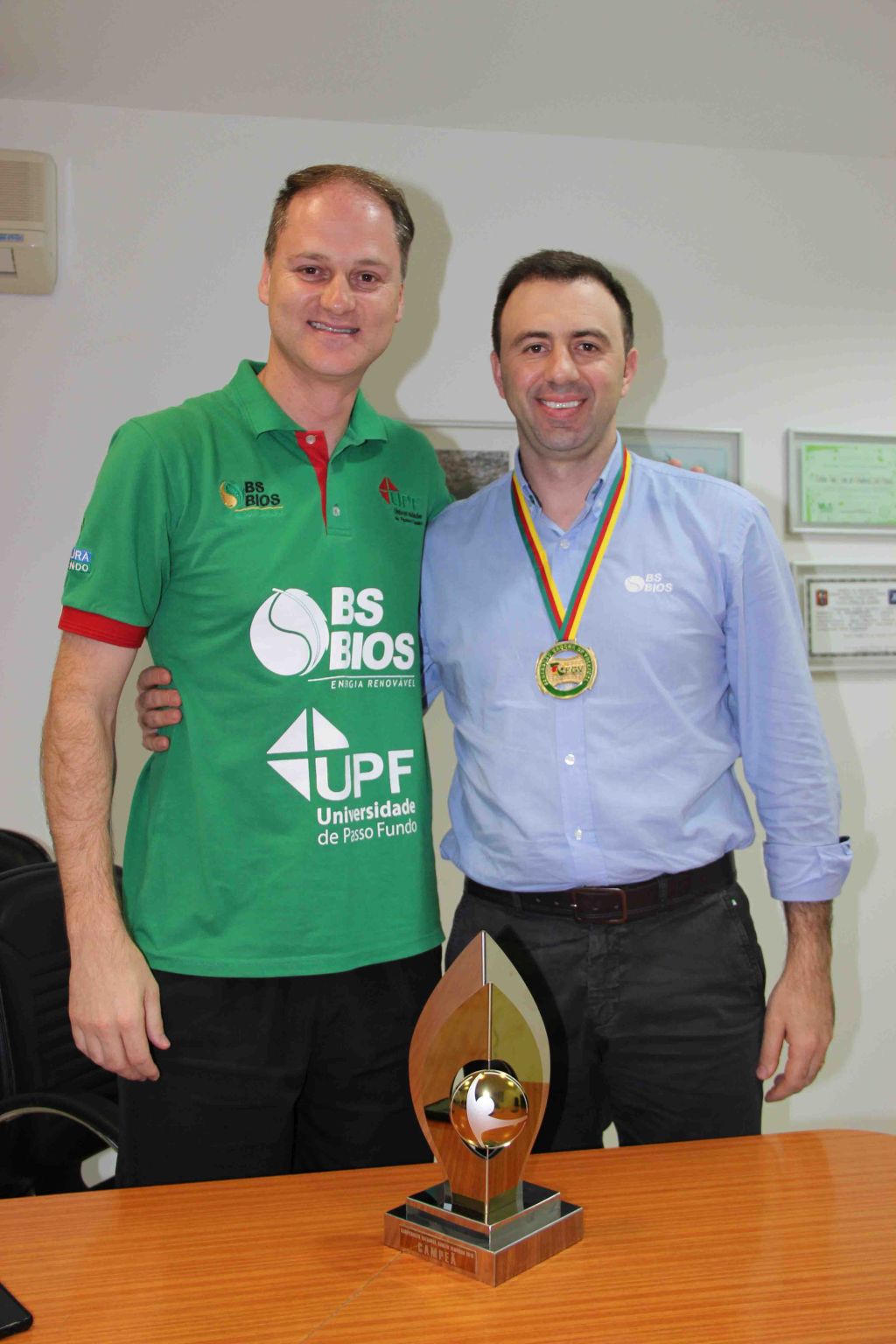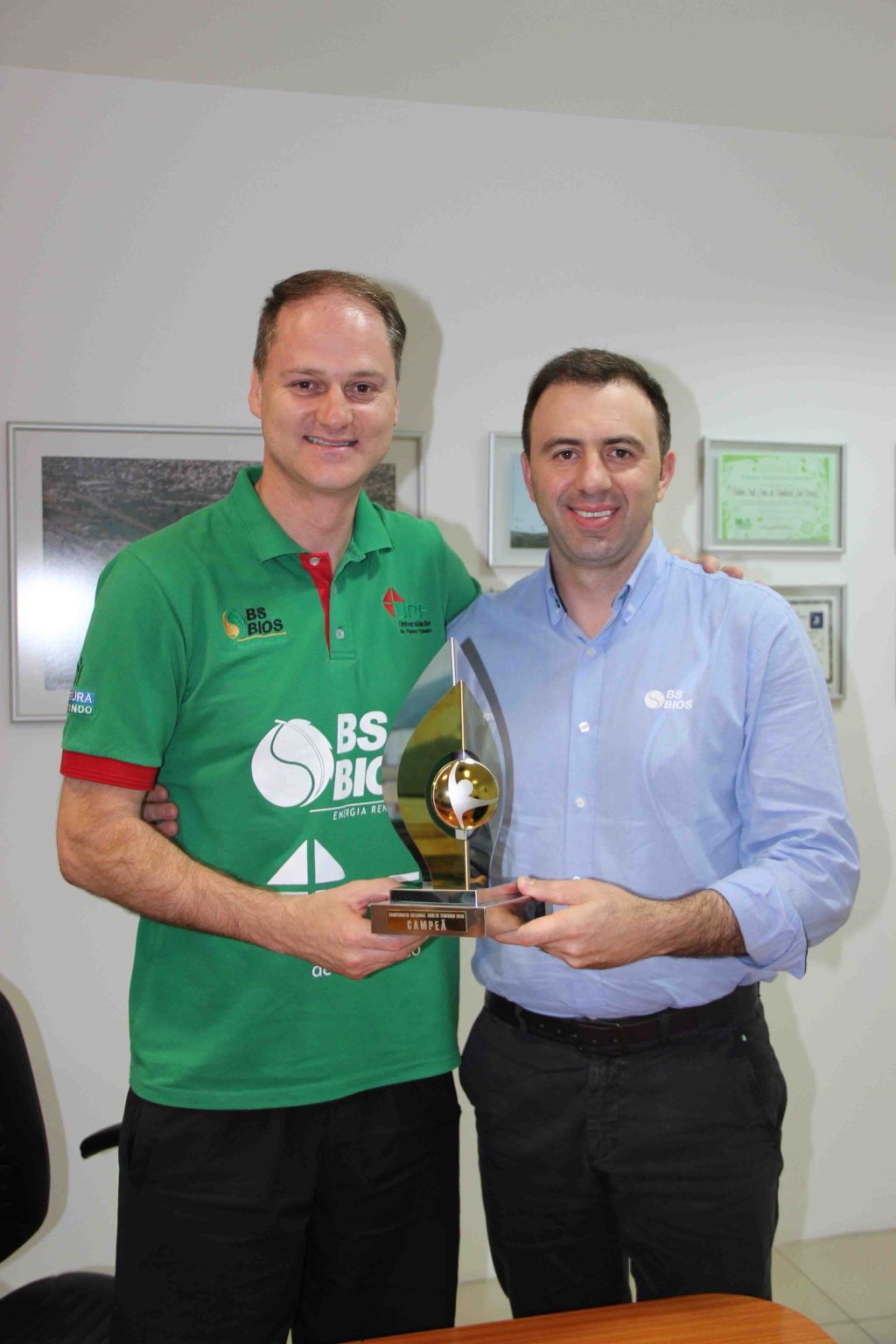 Na tarde desta segunda-feira (21/12), o técnico foi recebido pelo diretor presidente da BSBIOS, Erasmo Carlos Battistella. Na ocasião o técnico apresentou o troféu e entregou uma medalha ao empresário em reconhecimento ao apoio da companhia à equipe de vôlei.