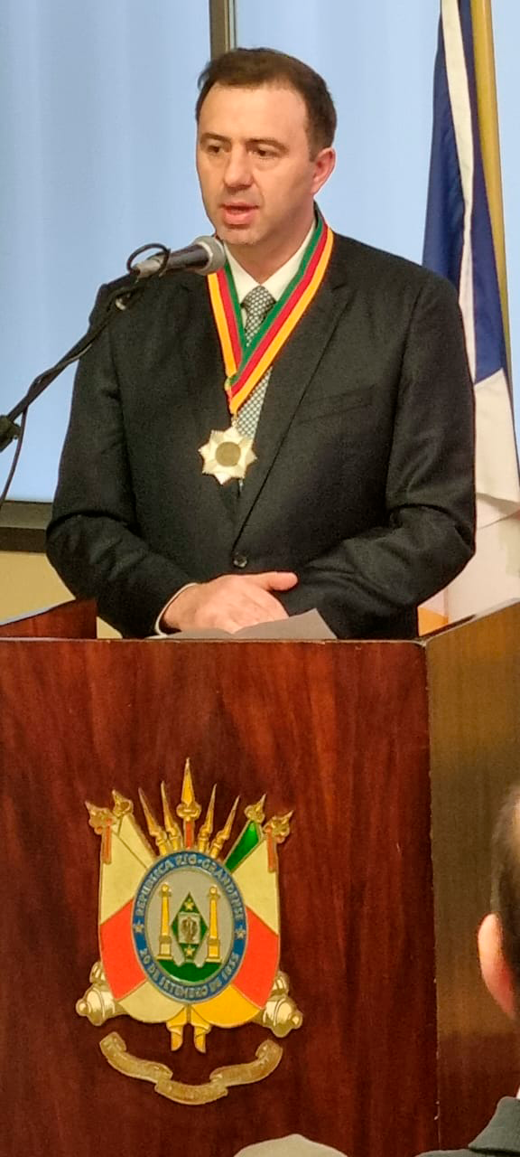 VoltarErasmo Carlos Battistella recebe a Medalha Mérito Farroupilha